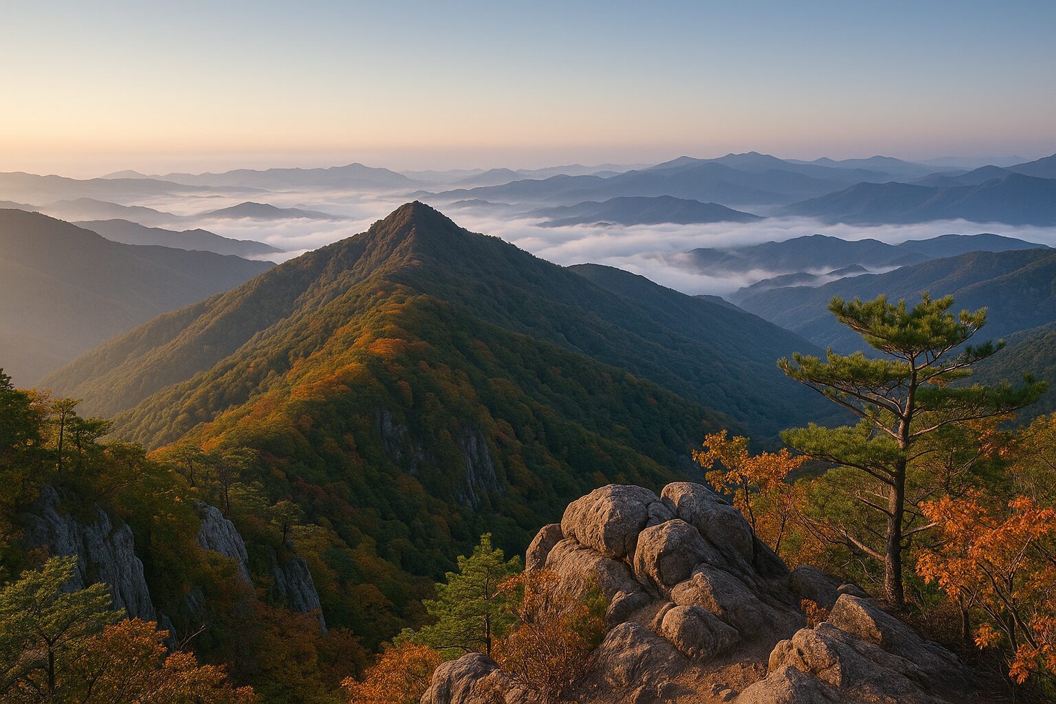 웅장한 능선과 숲길이 조화를 이루며 사계절 다른 풍경을 보여주는 산이에요.