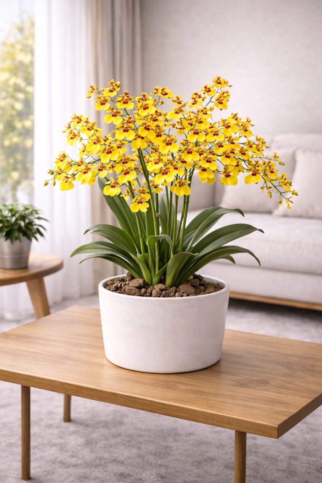 ์จ์๋์์ ๊ฝ์ด ์์ ๋๋น๊ฐ ์ถค์ถ๋ ๋ชจ์ต์ฒ๋ผ ํผ์ด โ๋์ฑ๋ ์ด๋ ๋์ดโ๋ผ๊ณ ๋ถ๋ฆฌ๋ ๋ํ์ ์ธ ๋์ด ์๋ฌผ์ ๋๋ค. ๋ ธ๋์์ ์ค์ฌ์ผ๋ก ํ์ฌํ ๊ฝ์ด ์ฌ๋ฌ ์ก์ด ๋ฌ๋ ค ์ค๋ด ๊ณต๊ฐ์ ๋ฐ๊ณ ์๋๊ฐ ์๊ฒ ๋ง๋ค์ด ์ฃผ๋ฉฐ, ์ธํ ๋ฆฌ์ด ํจ๊ณผ๊ฐ ๋ฐ์ด๋ ๊ฐํ ์๋ฌผ๋ก ๊พธ์คํ ์ธ๊ธฐ๊ฐ ์์ต๋๋ค.